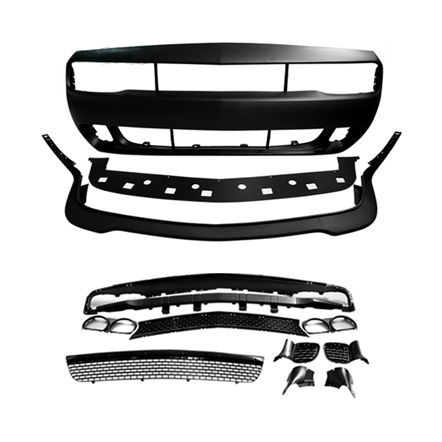 Parachoques delantero estilo Dodge Challenger/Hellcat BSSPARTS 2015-2023 con parrilla y borde HC sin pintar