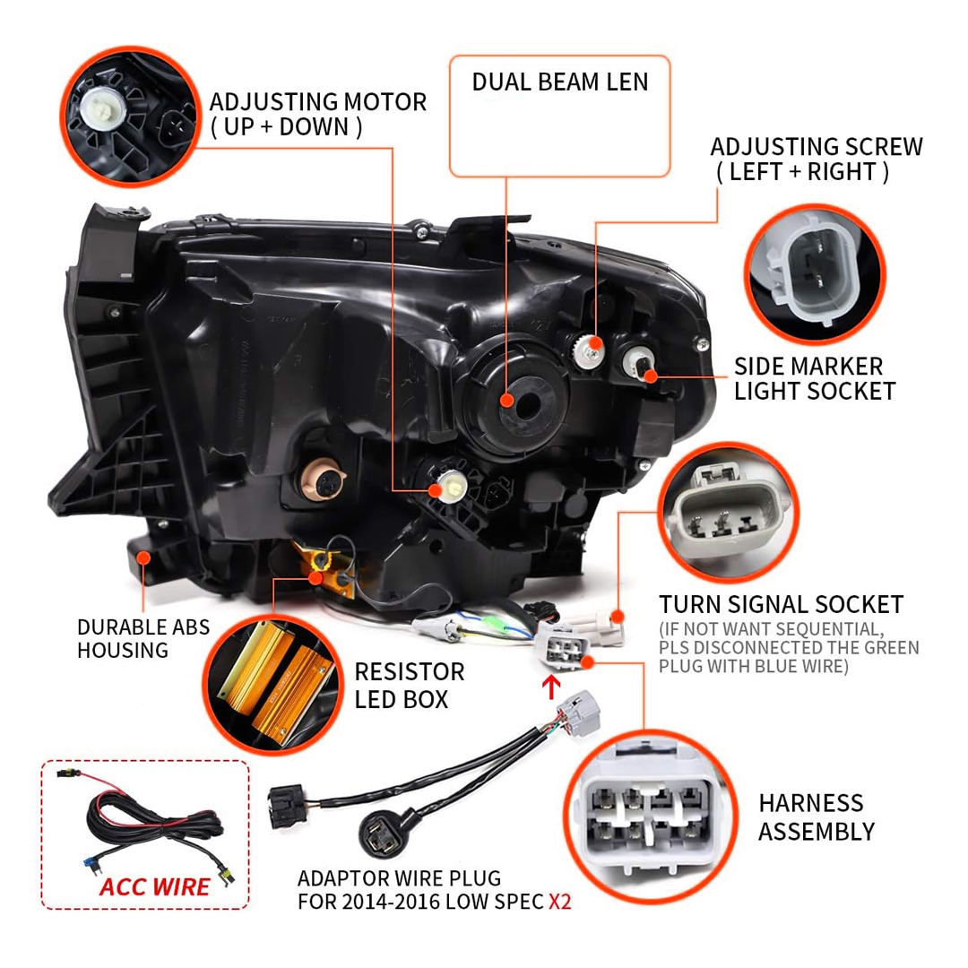 Vehicle Part: Pair 2014-2021 Toyota Tundra / LED Headlights with LED LensFeatures: